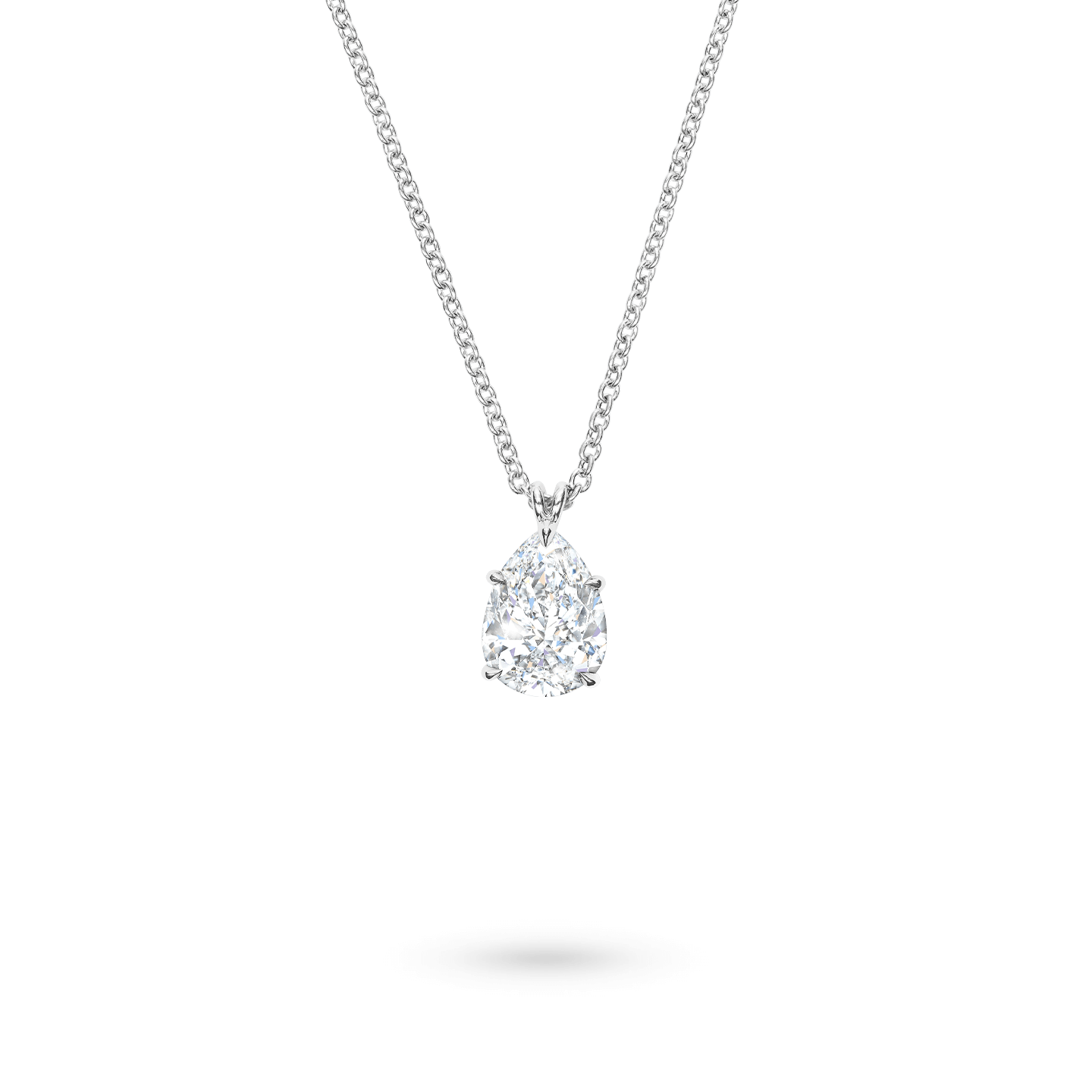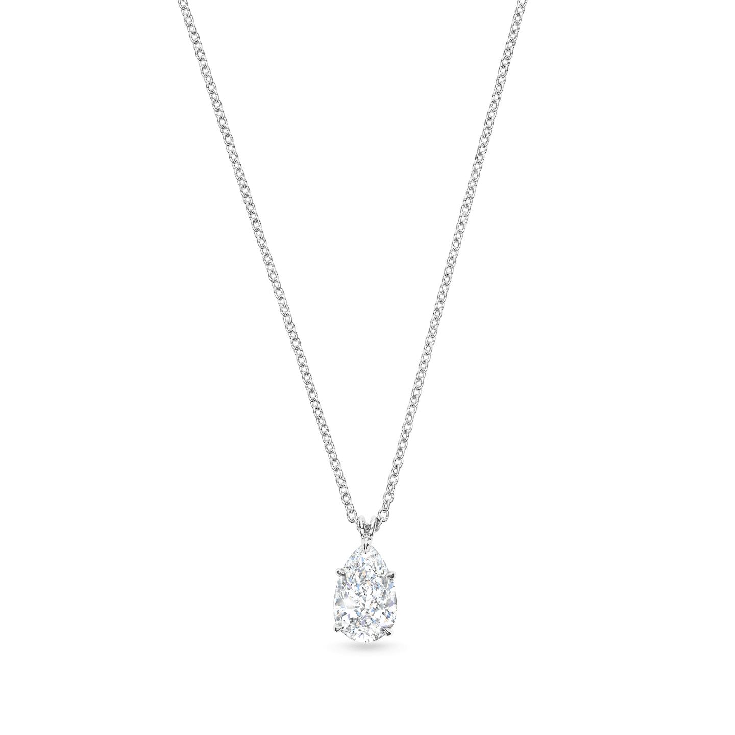 Available with one pear-shaped diamond starting from 0.50 carats, set in platinum.