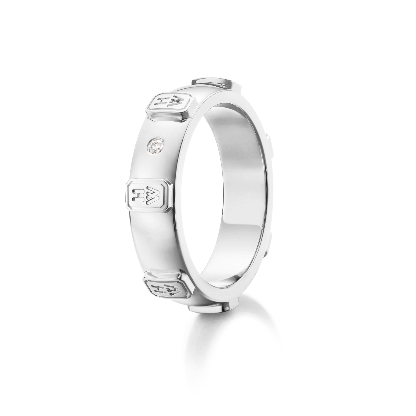 Adorned with the House of Harry Winston’s iconic “HW” hallmark and a round brilliant diamond, the HW Logo Band is the perfect complement for one of life’s most meaningful moments.