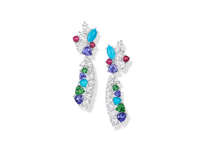 ハリー・ウィンストンの職人たちは、トンボの繊細な美しさを表現するために、熟練のジェムセッティング技術を駆使し、ひとつひとつのジュエリーを丁寧に作り上げ、生命力と輝きを放つ鮮やかなジェムストーンが存在感を放つ、至高の作品を生み出しました。