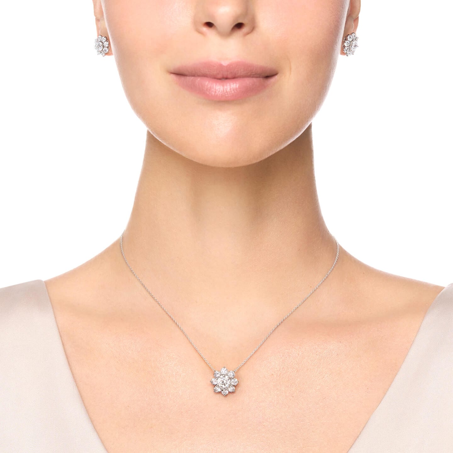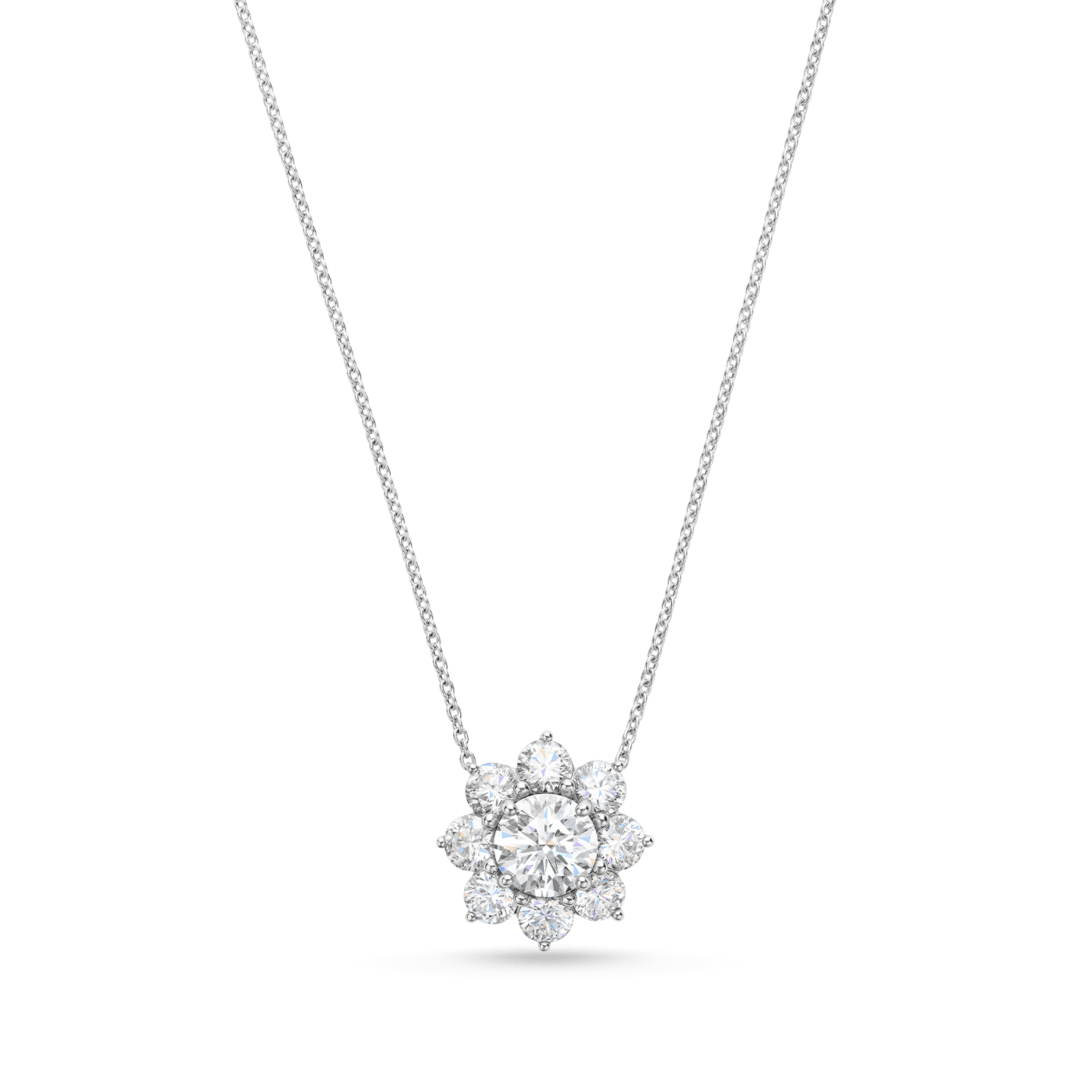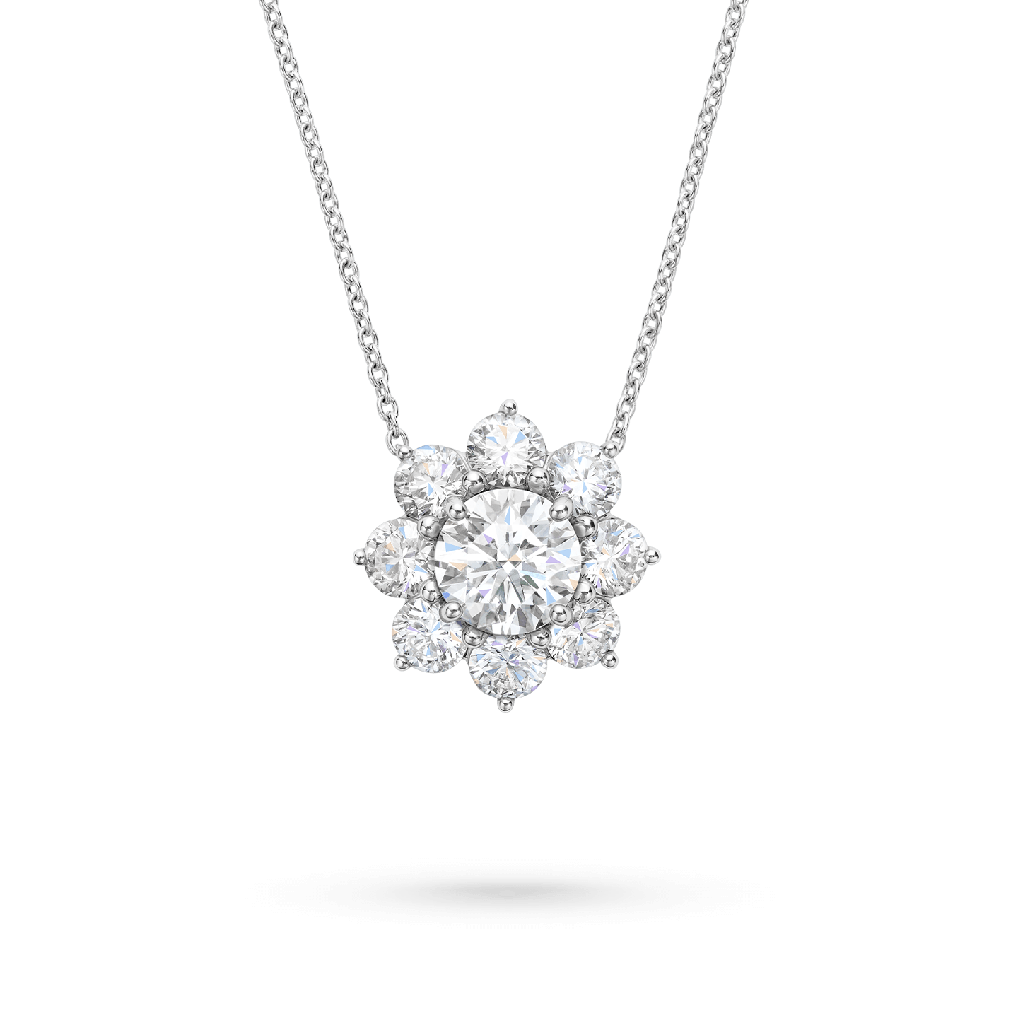 センター:1個のラウンド・ダイヤモンド(約1.50カラット)9個のラウンド・ダイヤモンド(計約3.50カラット)、プラチナ製。