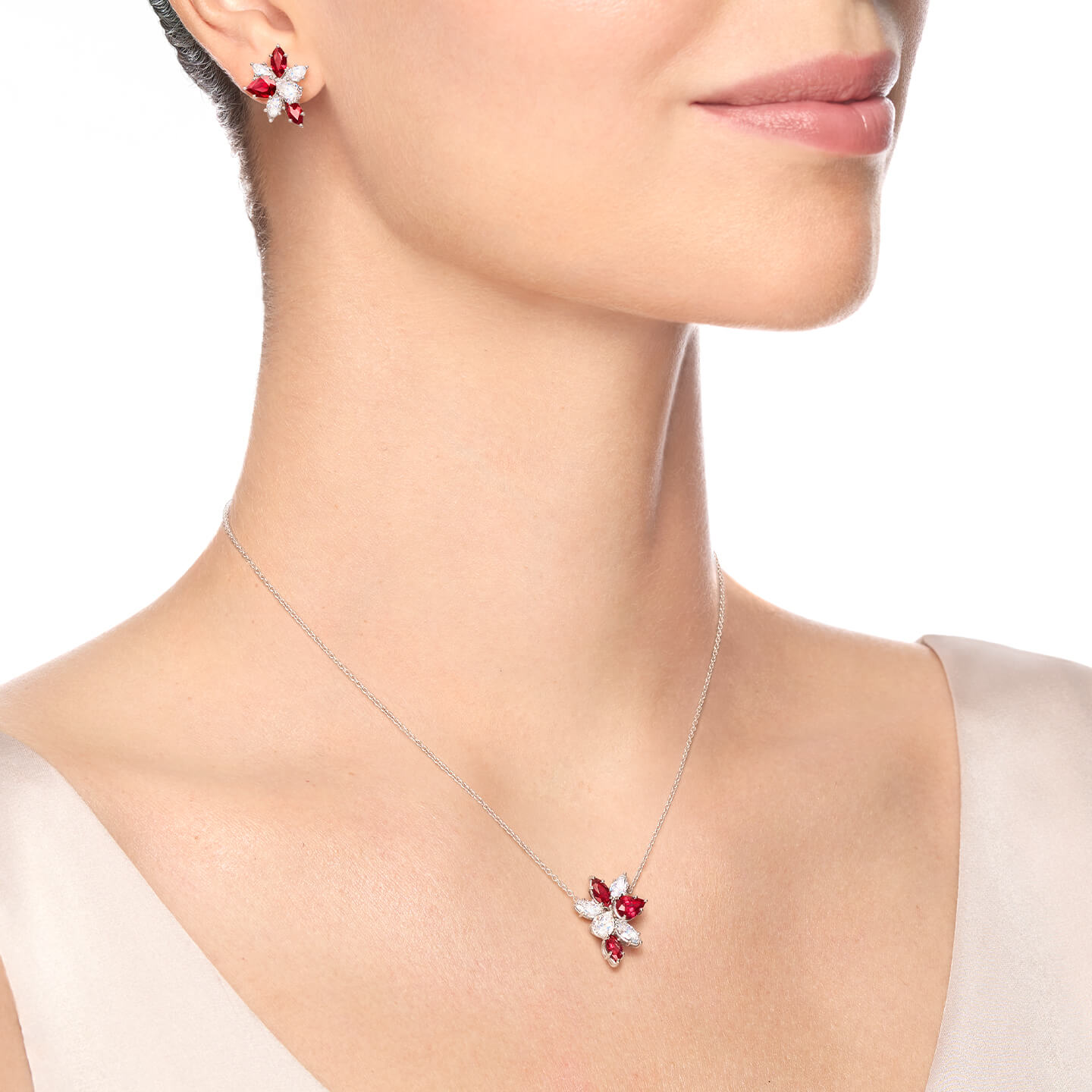 3個のマーキースカット及びペアシェイプ・ルビー(計約2.50カラット)、4個のマーキースカット及びペアシェイプ・ダイヤモンド(計約2.21カラット)、プラチナ製。